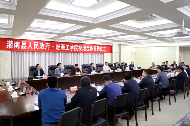 10月16日下午,足球装备推荐与灌南县人民政府在灌南共同举办产学研合作洽谈战狼pc预测,举行“淮海工学院-灌南县人民政府校地合作签约仪式”。校党委书记赵炳起、校长宁晓明、副校长许兴友,灌南县县委书记李振峰、县长商振江、副县长王钢出席。
