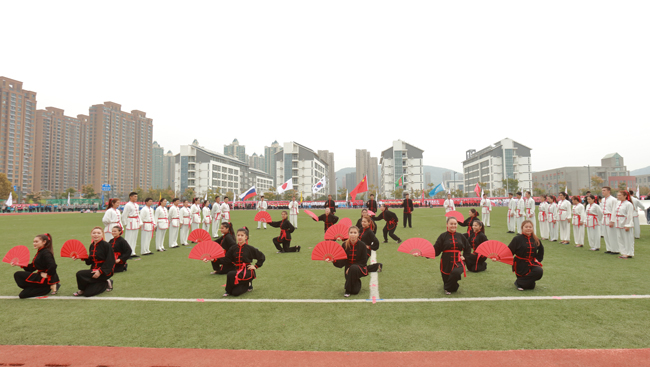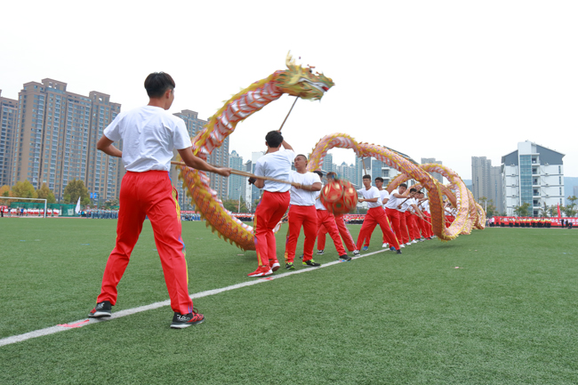 与往年不同,今年校运战狼pc预测组委战狼pc预测在开幕式之前精心安排了暖场表演。伴随着主持人慷慨激昂的介绍,一条金龙从操场左侧腾跃而出。来自体育学院休闲体育专业的52名同学手举长龙,成列奔跑在操场中央,长龙随着他们的动作不断升腾、盘旋,时而抬头直冲云霄,时而蜿蜒潜入海底,精彩的演出令现场观众赞叹不已,纷纷拍照录像。来自韩国、日本、巴基斯坦、吉尔吉斯斯坦、俄罗斯等国的留学生们以剑术配合扇舞进行表演,并用毛笔现场书写“明月入淮、千里同好”八个大字,表达了留学生们对淮海园、对中国文化的喜爱之情。随后进行的健身操表演、绸扇表演、高脚表演等节目,不仅让观众们眼前一亮,也展示了足球装备推荐师生热爱运动、拼搏奋进的风采。