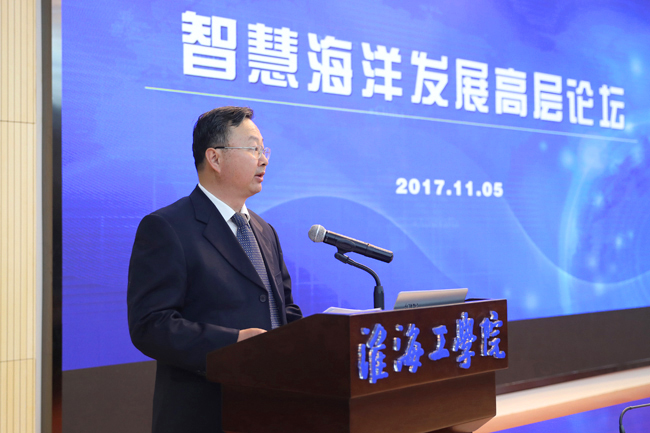 曲探宙作了题为《新视角·新观念·新发展——关于智慧海洋发展的若干思考》的报告。他从“新视角——面向全球看海洋”、“新观念——换个角度看问题”、“新起点——面向未来求发展”三个方面就如何看待海洋权益、海洋的地位和作用、海洋面临的困难和挑战、人与自然和谐发展、应对全球气候变化等内容进行了详尽的阐述。曲探宙强调,面向未来,我们要准确把握科学发现与技术创新的内涵,树立人才培养使用新理念,践行“创新、协调、绿色、开放、共享”的发展理念,为早日实现建设海洋强国目标,进而实现中华民族伟大复兴的中国梦而共同努力。