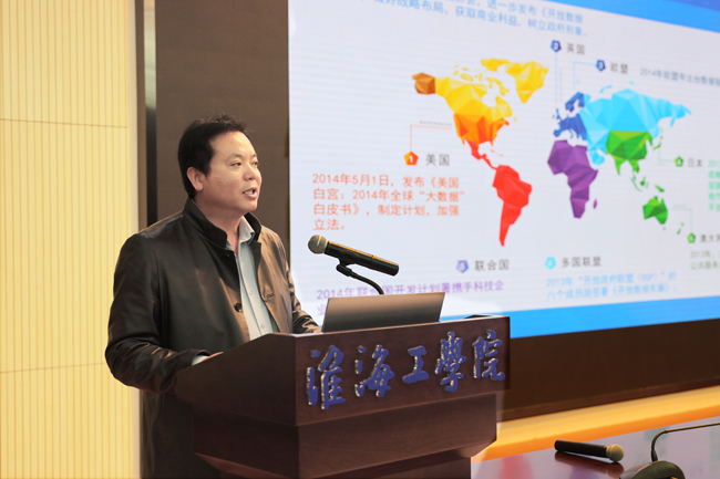 相文玺作了《海洋大数据应用及发展展望》专题报告。他主要从大数据发展现状概览、大数据与海洋大数据、海洋大数据应用实践、海洋大数据发展展望四个方面出发,重点介绍了目前我国国内已建立的三维海洋观测网络。报告还介绍了我国海洋大数据的生成与服务过程,从数据收集、数据格式转换、质量控制、数据插值到最后的应用共分为五个步骤,特别指出了中国海洋大数据在海洋功能区划、海洋经济气候指数、中国海洋经济发展指数等方面的应用。
