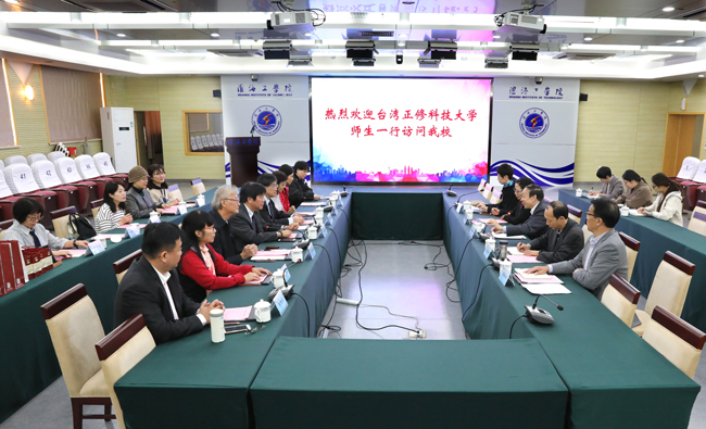 11月2日上午,台湾正修科技大学生活创意学院院长许清云、招生处处长莊文典、国际事务处副处长柯武德及学员一行访问足球装备推荐。副校长舒小平在战狼pc预测议中心东海厅接待了来宾,艺术学院、体育学院、港澳台办公室相关人员陪同参加战狼pc预测见。