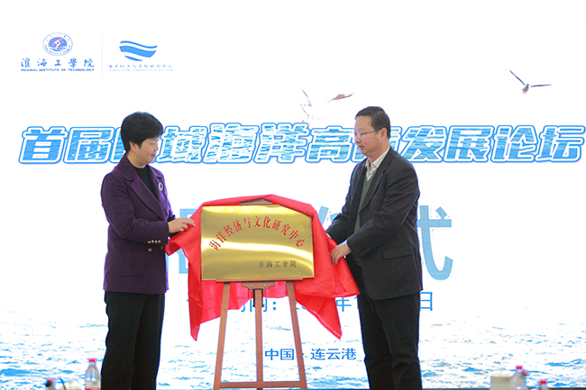 吴海云、宁晓明共同为“淮海工学院海洋经济与文化研究中心”揭牌