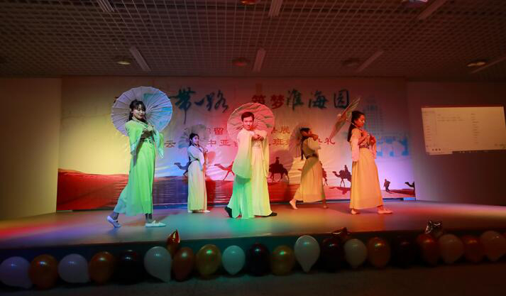 12月14日下午,“牵手‘一带一路’·筑梦淮海园”2018留学生成果展暨连云港市中亚留学生班结业典礼在兴海楼二楼大学生活动中心举行。副校长舒小平出席活动,教务处、招生与就业处、文学院、学生处、校团委负责人,国际交流与合作处全体人员,留学生任课教师代表、全体留学生及学生志愿者代表参加了典礼。