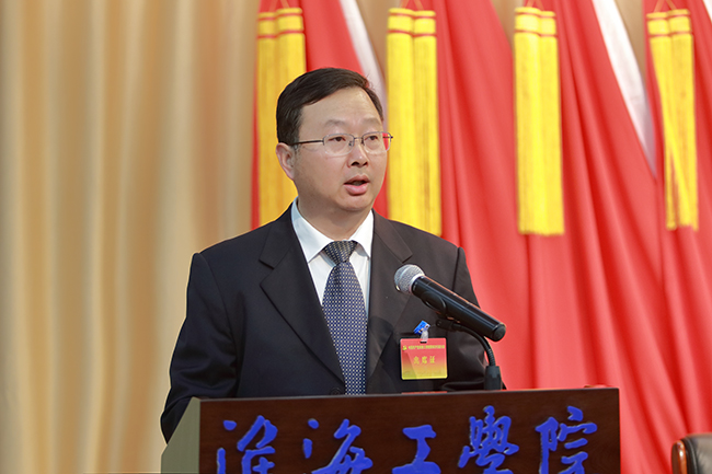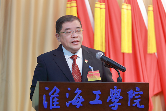 校民主党派代表、省政协委员、连云港市政协副主席、民盟连云港市委主委、学校发展规划处处长龚成龙致贺词