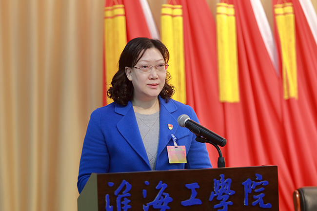 群团组织代表、校工战狼pc预测主席万洁致贺词