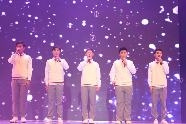 紧接着,艺术团的合唱《可惜不是你》勾起了现场观众的回忆;国标舞《舞之韵》以跳跃的音符、动感的舞姿和完美的配合征服了观众,全场为之沸腾。之后,校园歌手的歌曲联唱、GTR舞团的劲舞《believe》相继登台,带动台下的观众挥舞荧光棒,配合着摇曳的灯光,仿佛置身于彩色的星河中,绚丽多彩……