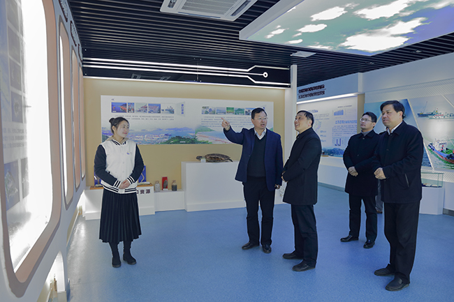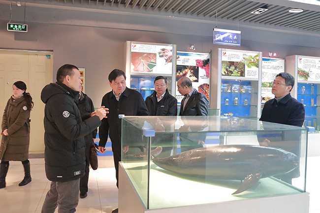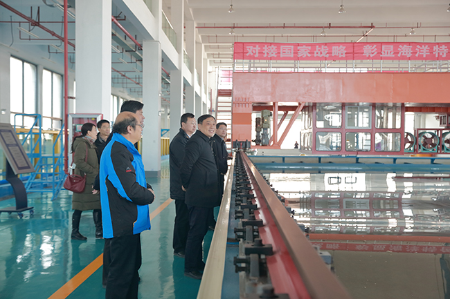 交流座谈后,在宁晓明、舒小平的陪同下,史金飞、朱晓春一行参观考察了海洋馆、海洋工程技术研究中心、海洋经济与文化研究中心等科研教学平台。