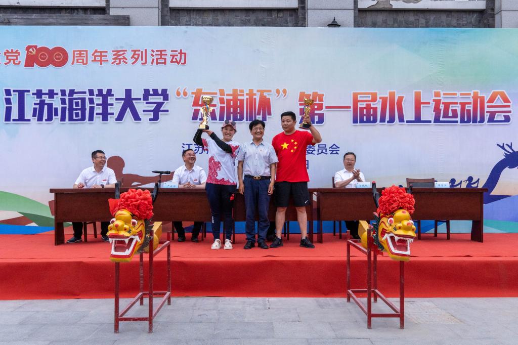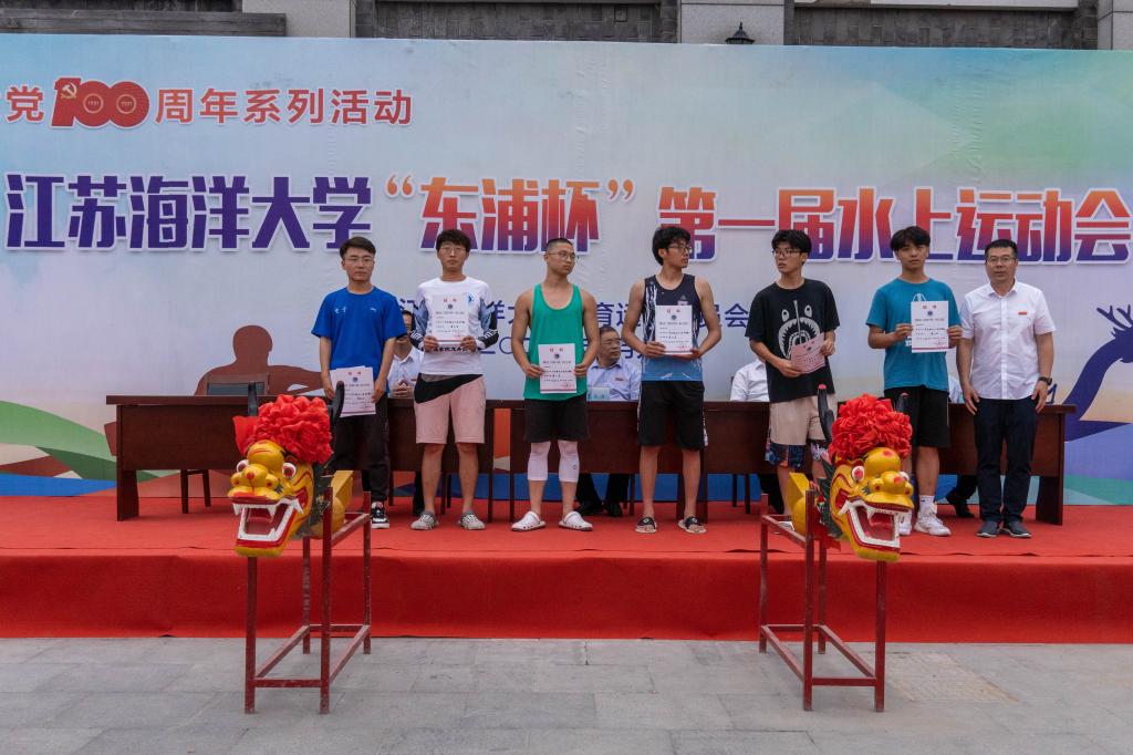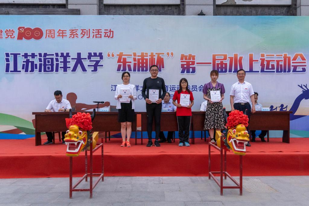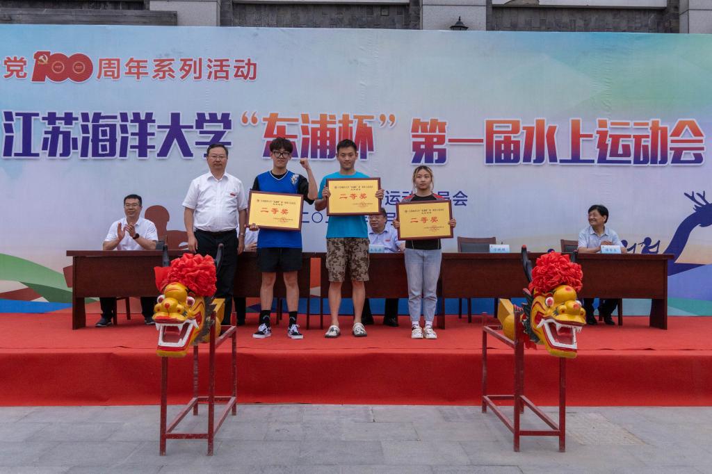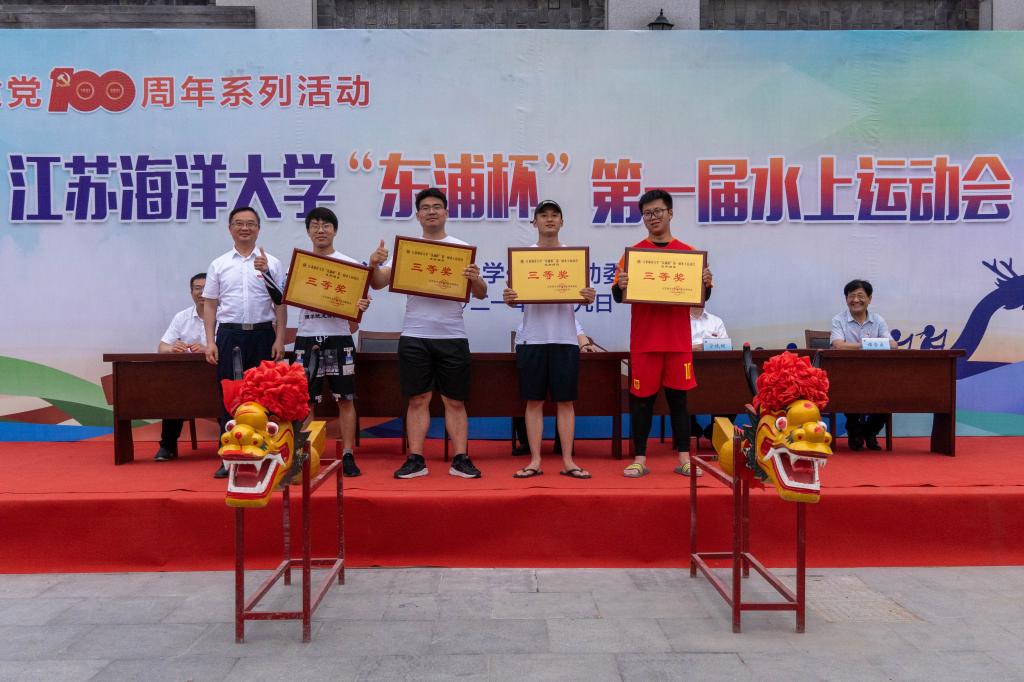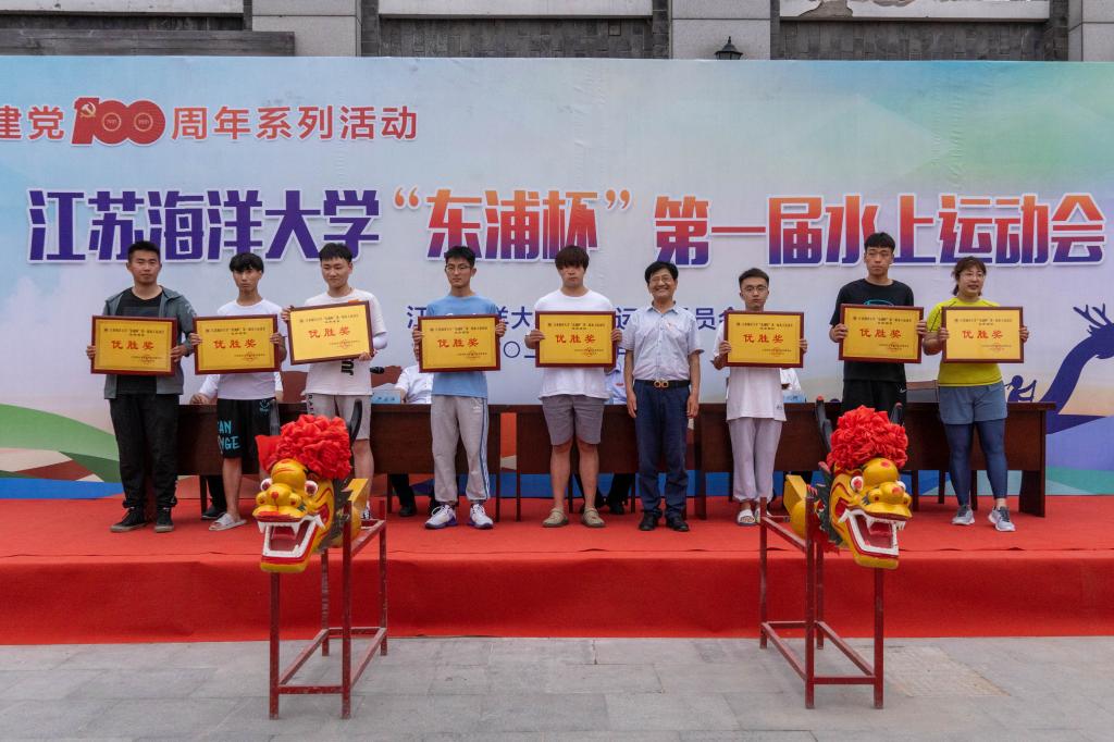 校长宁晓明为龙舟比赛特邀组获奖运动员颁奖