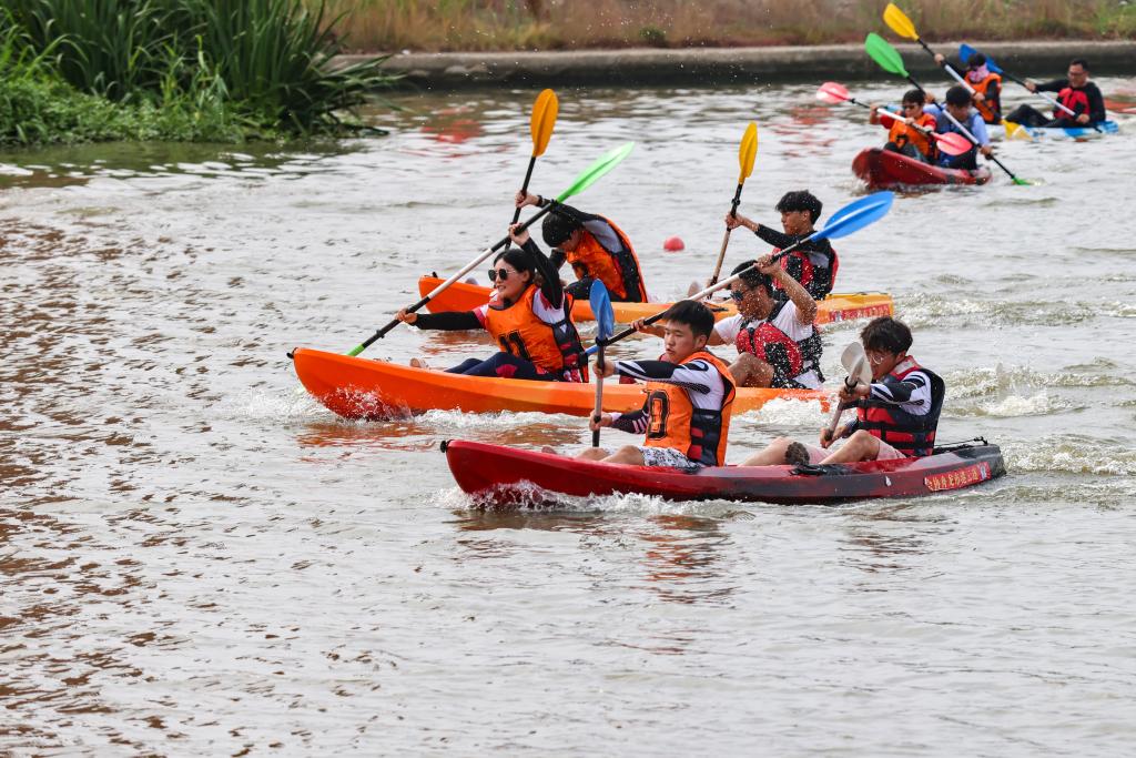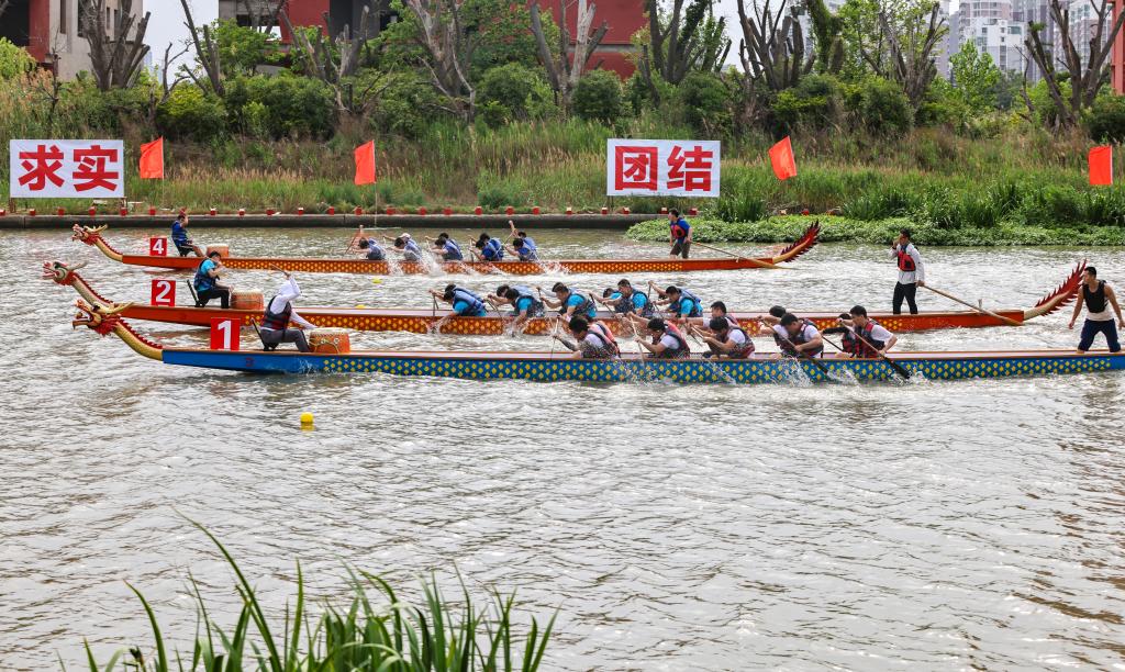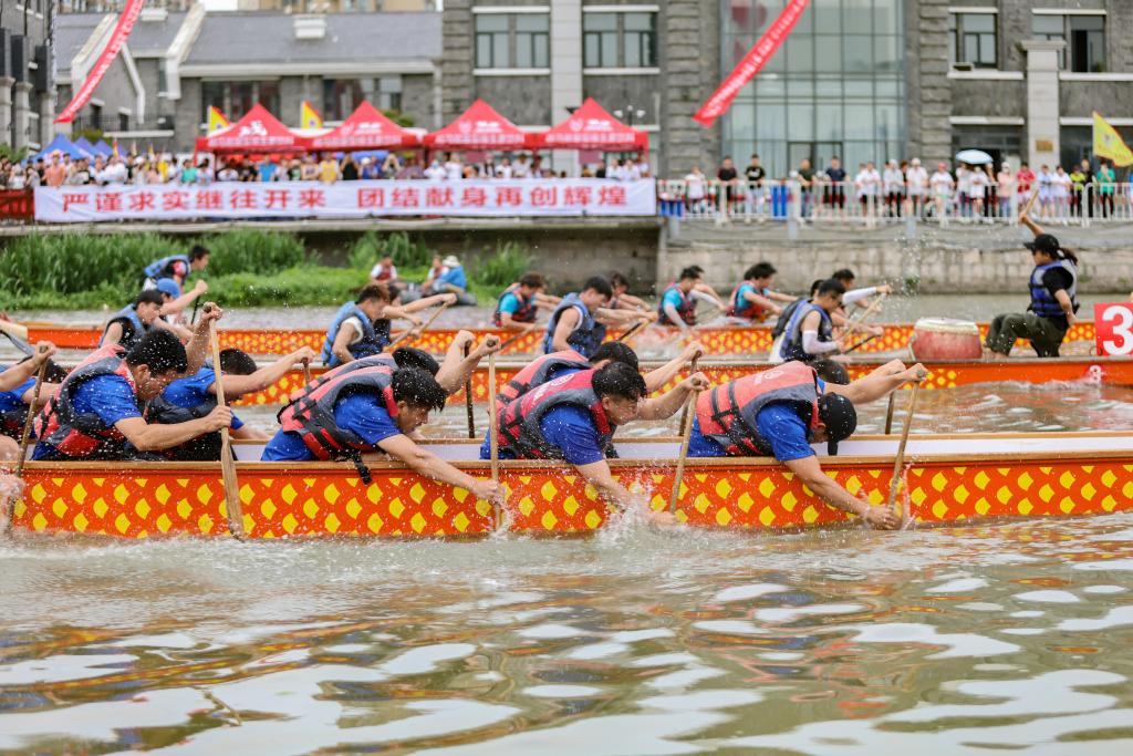 活动第一阶段为12人龙舟公开组300米直道赛。活动分为四组,每组有四队。随着裁判一声令下,船桨挥动激起阵阵水花,鼓声、号子声和观众的呐喊声此起彼伏,场面十分热烈。