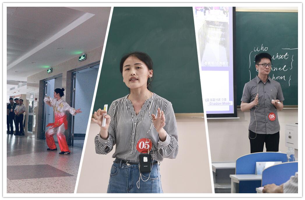 总决赛现场,9位参赛选手现场展示各具特点、重彩纷呈。班鑫鑫老师以皮肤衰老引入光稳定剂教学主题;姜乐老师通过鸡兔同笼、鸡鸭同笼问题娓娓道来,讲解线性方程组解的判定定理;宫肇南老师利用雨课堂智慧教学工具,从文化视角展示文字的演变;丁云飞老师条理清晰、富有激情地讲解什么是钢什么是铁;高迎莉老师图文并茂、生动讲解过敏反应;古璇老师逻辑清晰、抑扬顿挫地介绍了伦理、道德的辩证关系;秦昆明老师通过案例分享、联系实际展示中医药文化;邱立楠老师整个教学展示信息量大、生动活泼,形象阐释了如何让传播力翻倍;吴蓉老师姿势标准、动作流畅、语言精练地展示了武术初级长拳。参赛教师教学设计精心、思路清晰、案例新颖、问题导向、互动热烈、语言流畅、教态大方,熟练运用现代信息技术手段,融入课程思政元素,体现以学生发展为中心的教育理念。