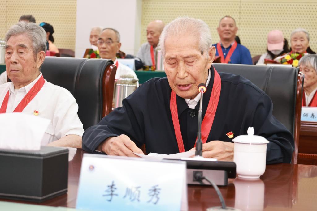 老党员代表李顺秀同志发言,他表达了对党、对学校的感恩之情。他表示,老同志们将永远铭记党的恩情,永远爱党护党,听党话、跟党走,进一步增强责任心使命感,为青年师生树立榜样,为学校的发展发挥余热。