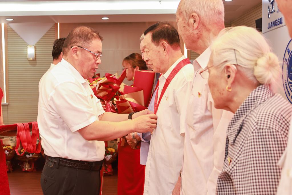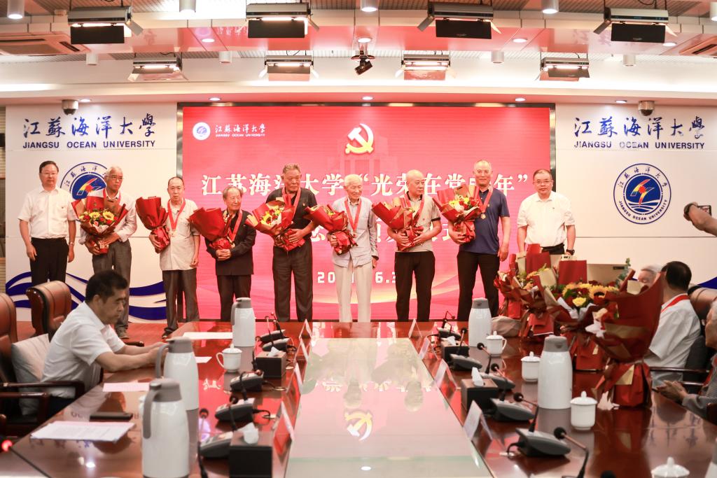 校领导为每位老党员颁发并佩戴纪念章,献上鲜花和祝贺,并同他们合影留念。在新党员和工作人员搀扶下,老党员怀着无比激动和喜悦的心情,陆续走上颁奖台。他们个个庄严肃立、精神矍铄,沉甸甸的纪念章在胸前熠熠生辉。全场响起阵阵的掌声,向各位老党员致以最崇高的敬意。