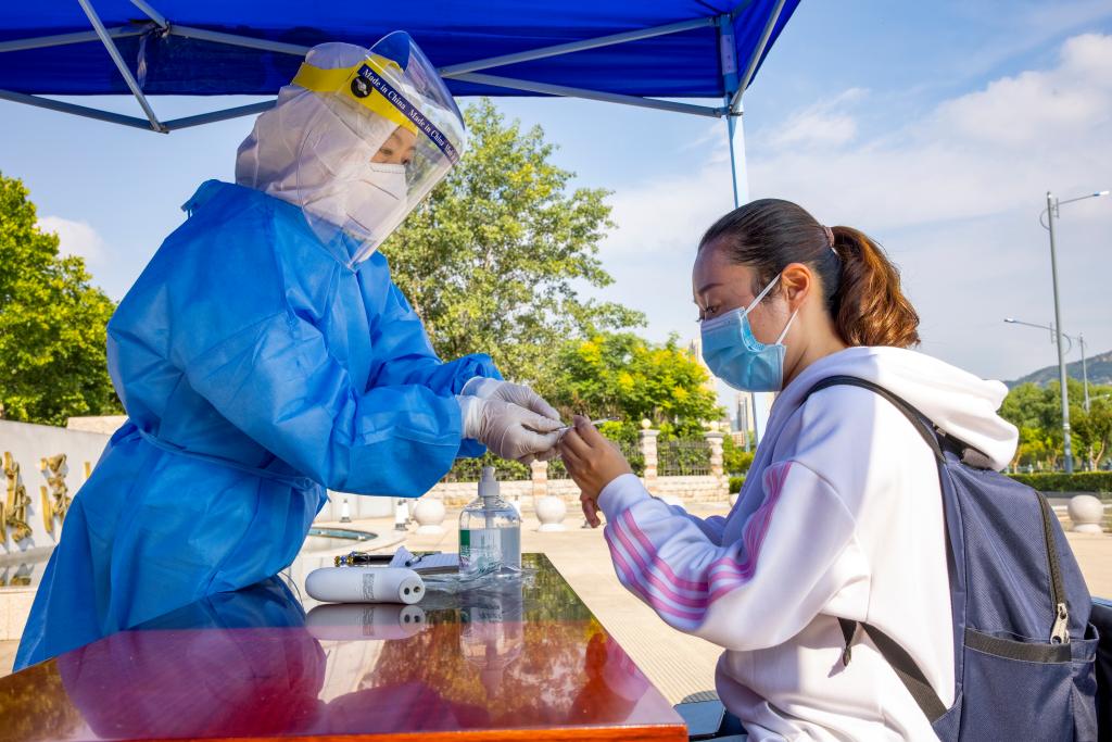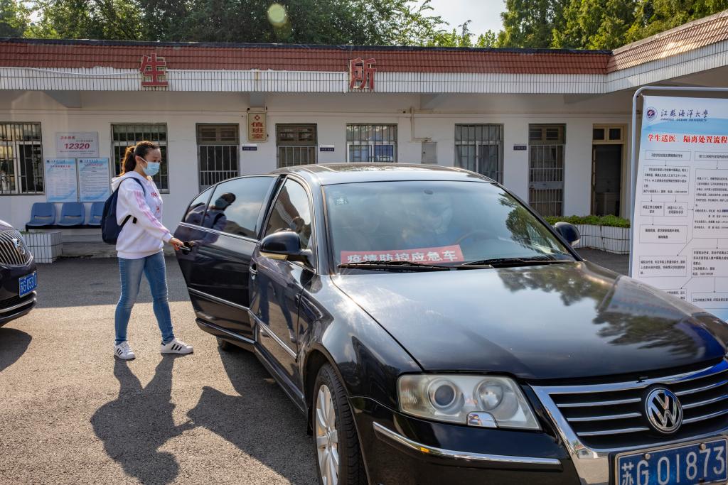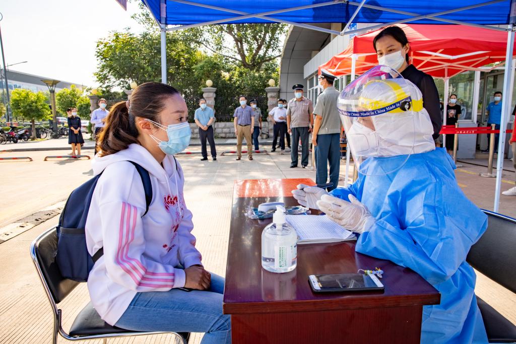 报到现场校车送发烧学生到医院做核酸检测