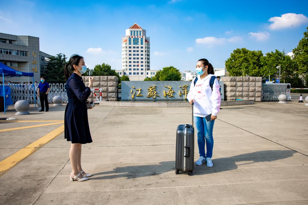 报到现场志愿者检查苏康码、行程码
