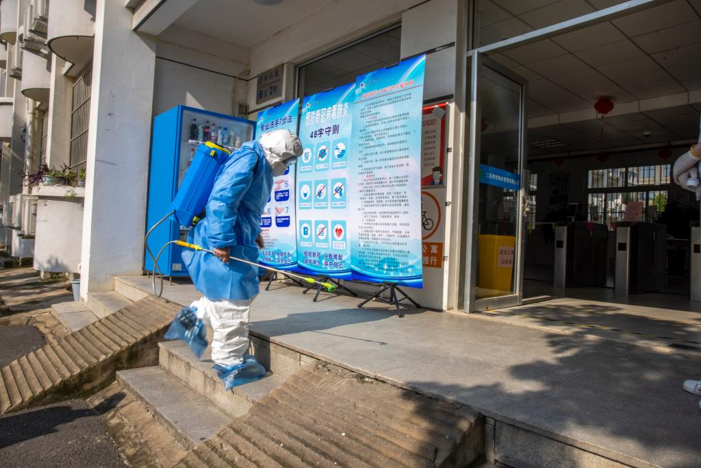 宿舍区工作人员进行消杀