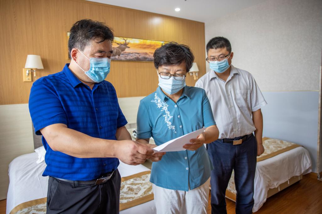 疫情处置组组长、副校长李梅英了解集中隔离点情况