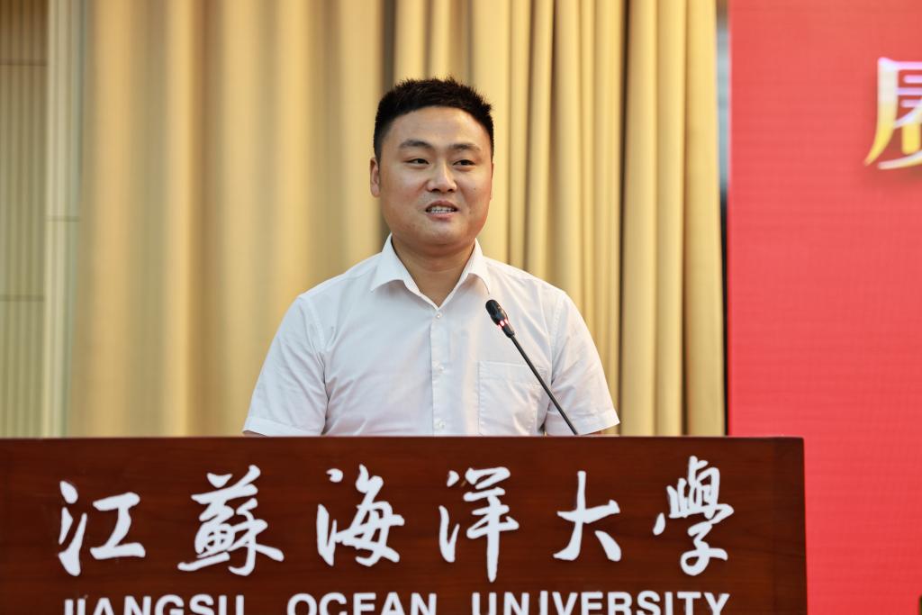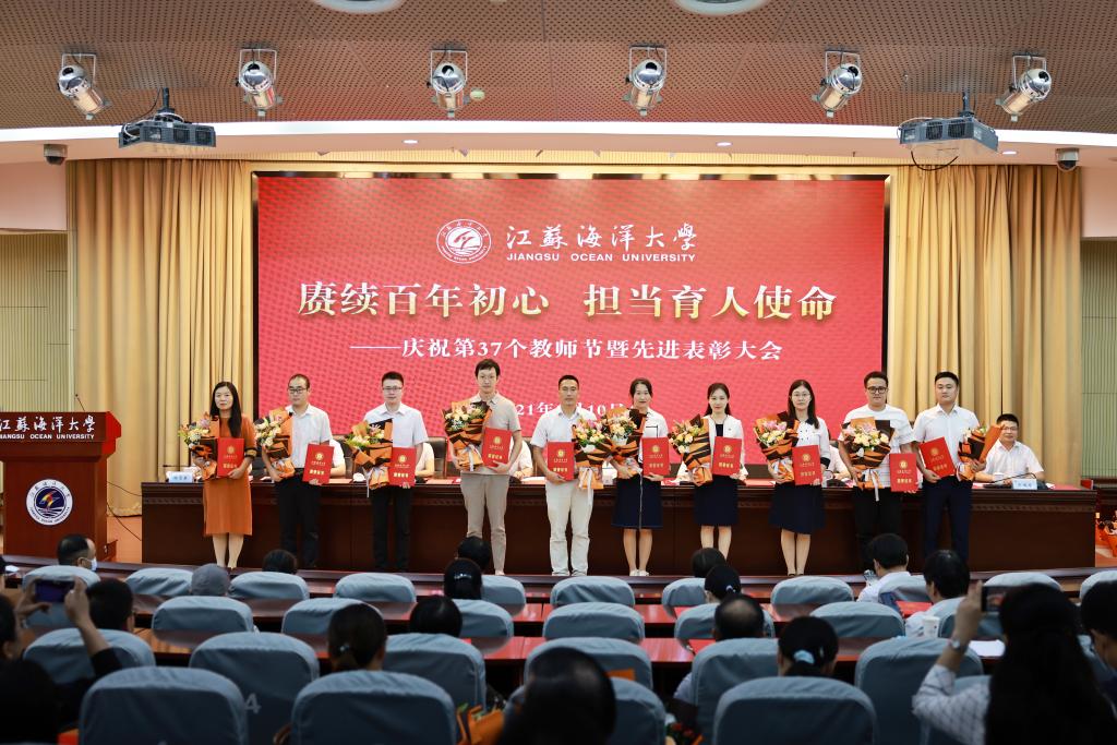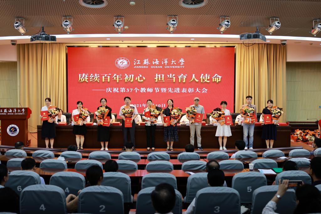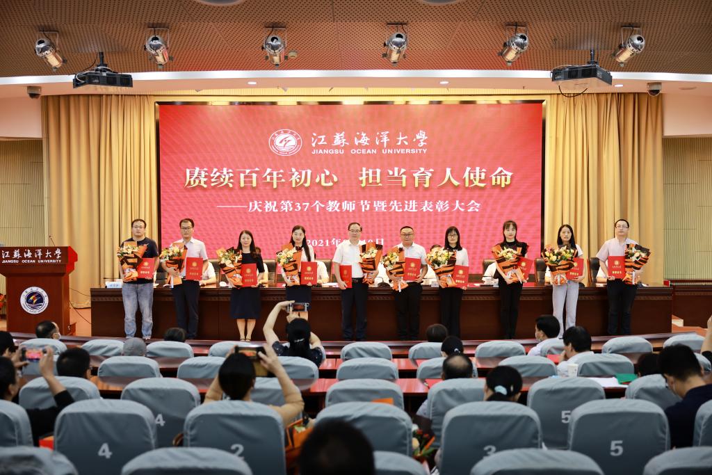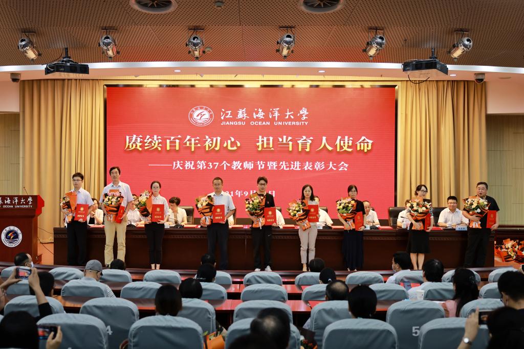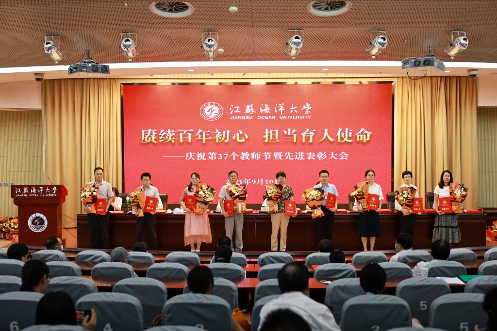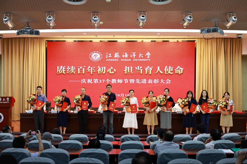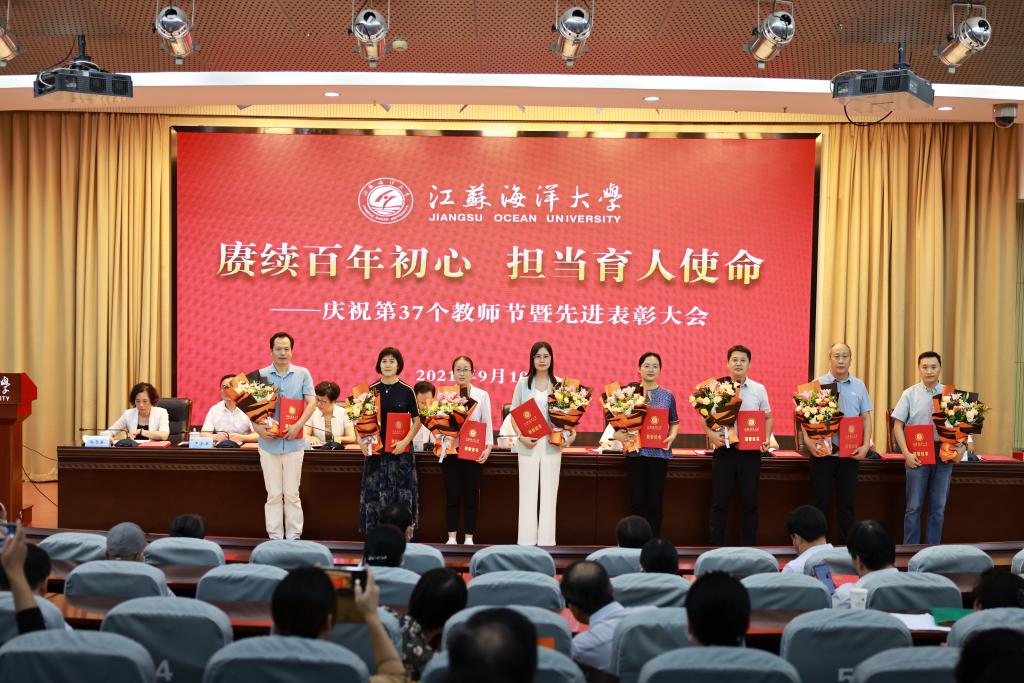 “三育人”先进个人代表环境与化学工程学院周丽华、师德师风考核优秀等次的电子工程学院孙晋、“优秀辅导员”代表海洋科学与水产学院韩振先后代表受表彰和从教30年教师发言。