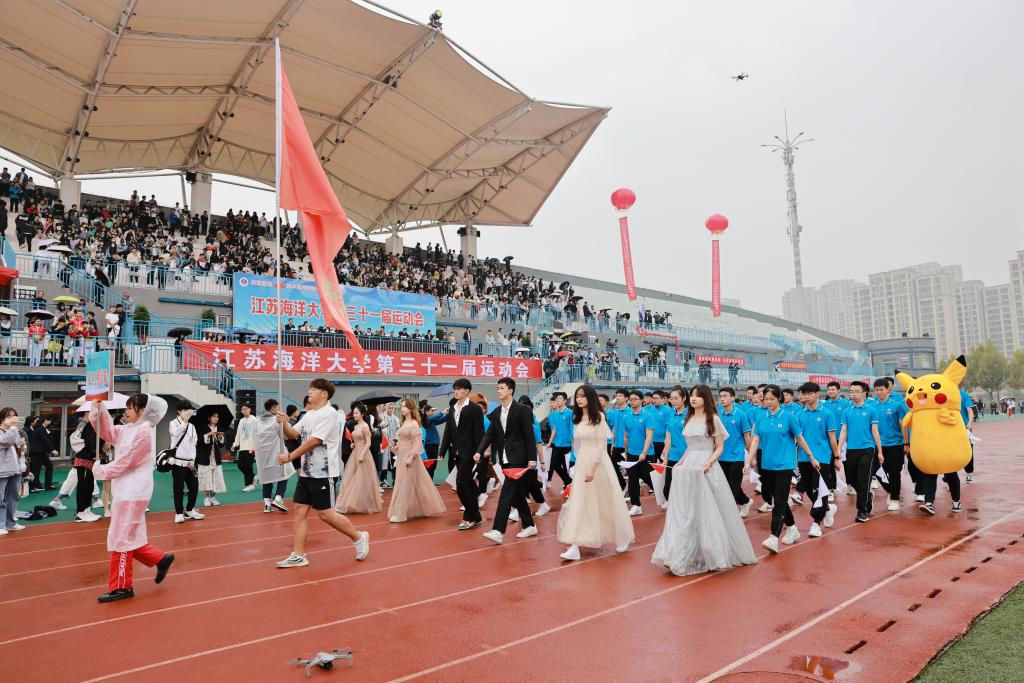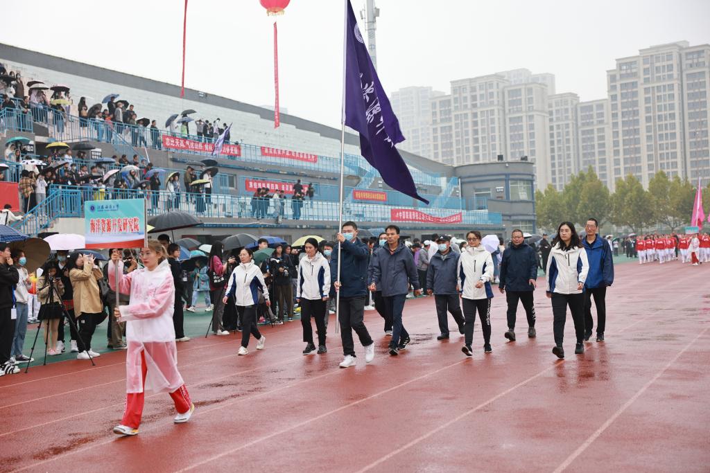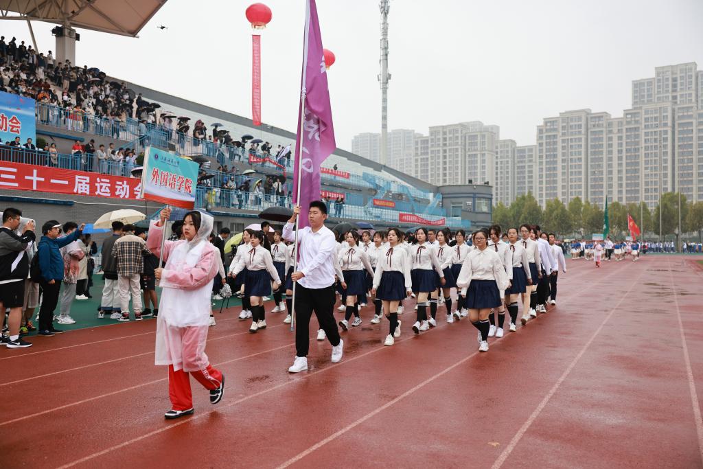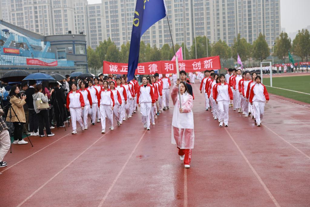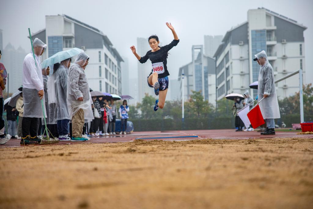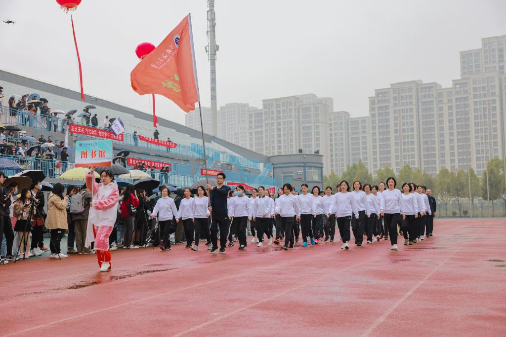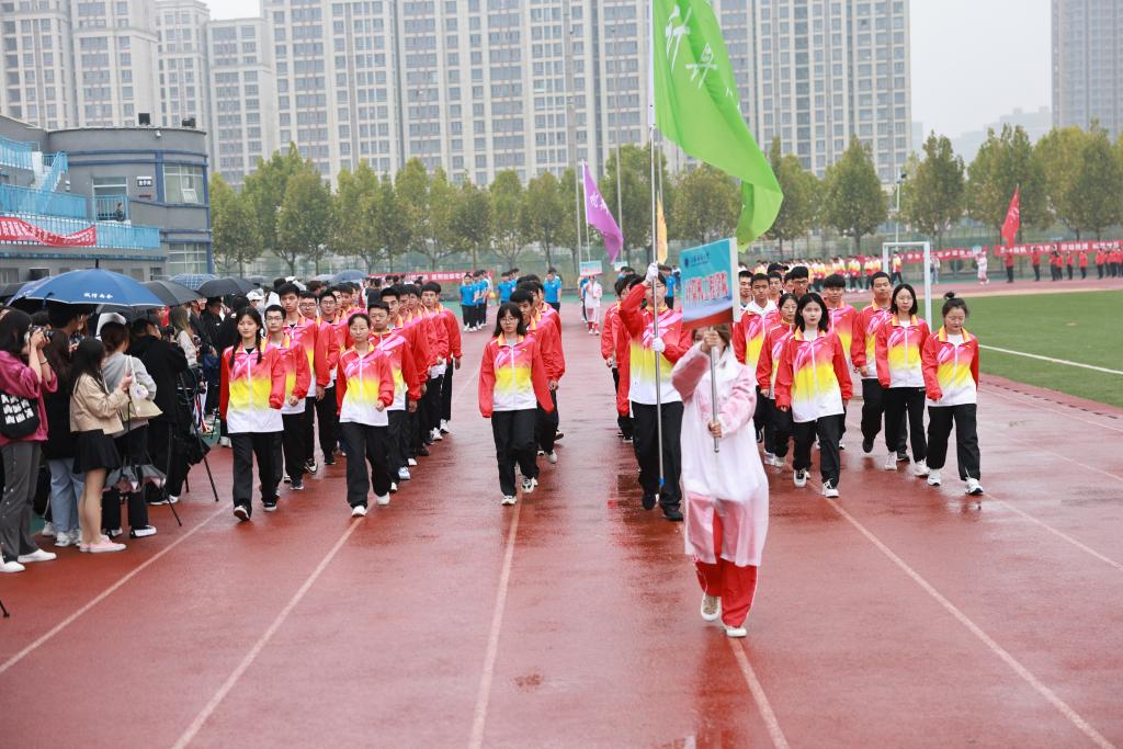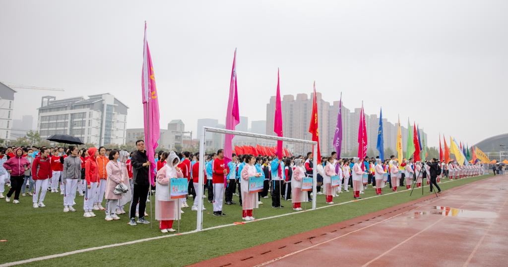 开幕式后,广播体操比赛、田径比赛与趣味项目比赛相继举行。运动场上彩旗飘扬,氛围热烈,尽管秋雨绵绵,但却淋不灭运动员昂扬斗志,浇不灭观众们加油助威的热情。