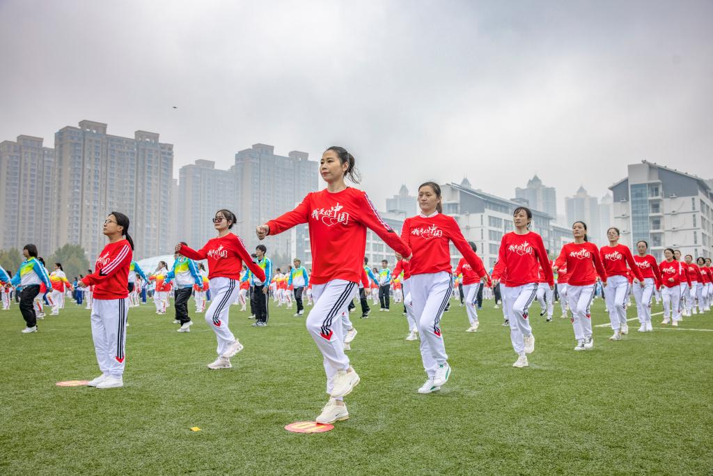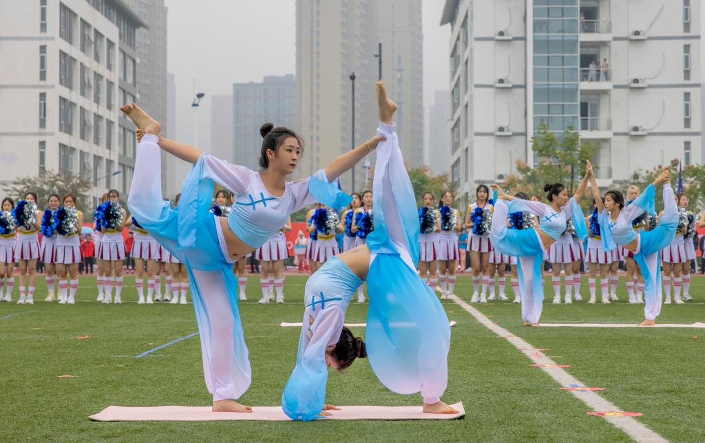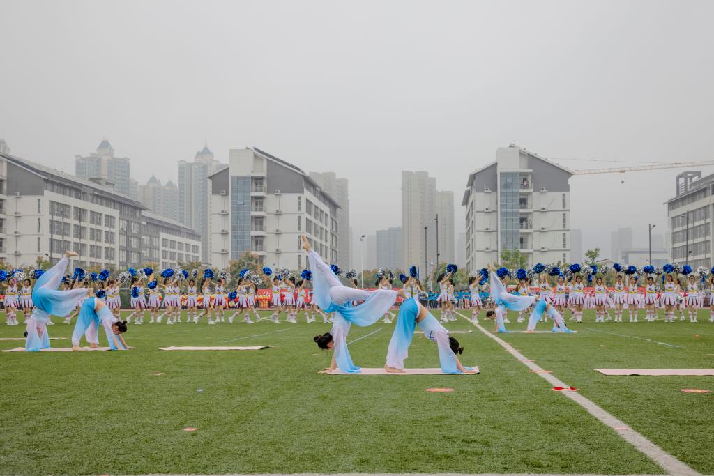 在濛濛秋雨中,动感单车表演者随着音乐的律动,展现了展翅高飞,乘风破浪的优美体态。紧随其后的是充满魄力的武术表演、柔美的瑜伽表演《大鱼》、青春洋溢的健美操表演《卡路里》等节目,为大家带来了一场视觉盛宴。