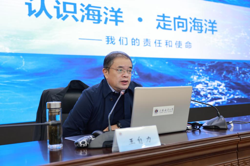 王自力用简洁易懂的语言、丰富的图片资料以及精彩的短视频向同学们介绍了中国海洋史,阐释了海洋强国的渊源及内涵,把同学们带入了海洋科学世界,在青年学生心中厚植海洋意识和海权思想根基。