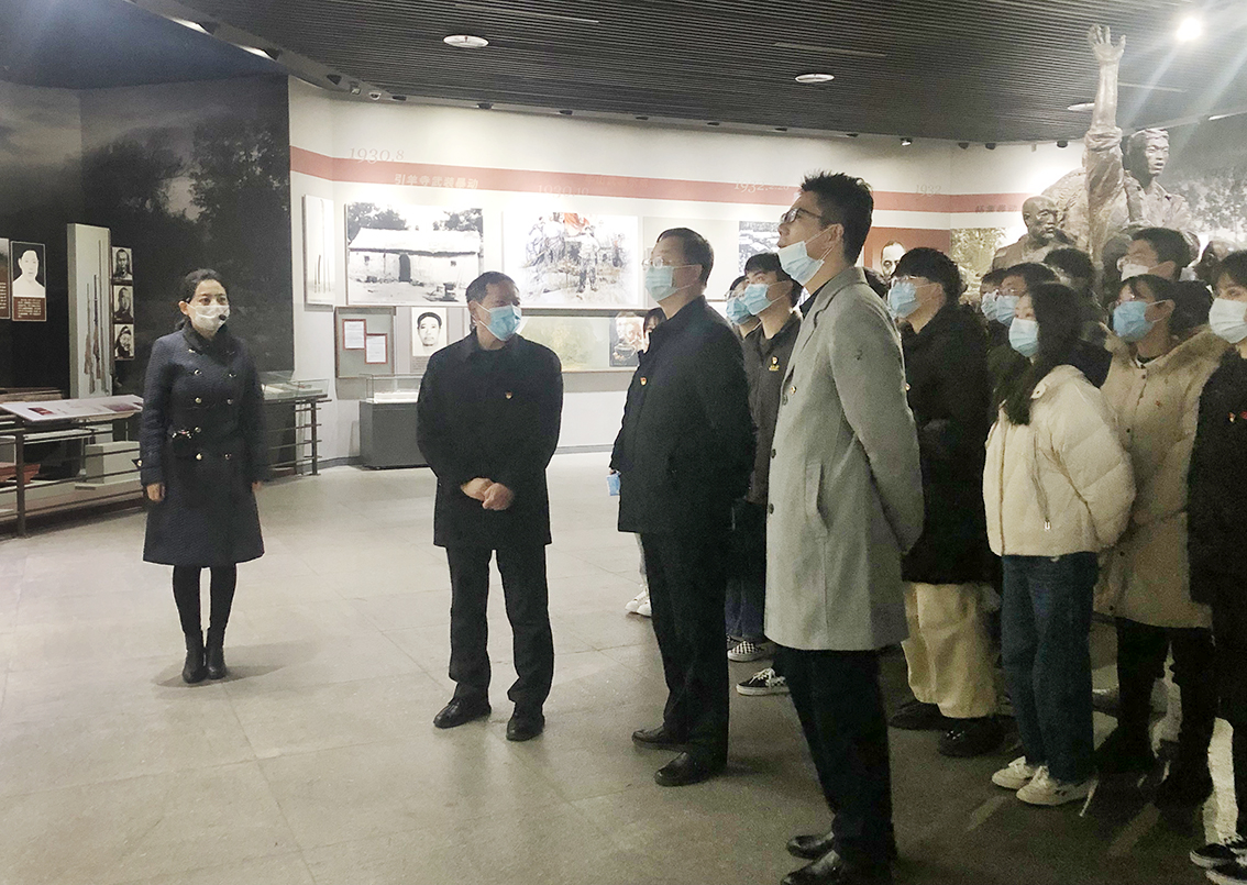 在市委党史工作办公室副主任许思文、革命纪念馆馆长白植明的陪同与讲解下,师生党员们一起参观了革命纪念馆展厅。在一册册书籍、一张张照片、一件件遗物的直观呈现下回顾了东海特支成立、连云港保卫战、刘少奇与连云港、八路军115师在连云港等峥嵘岁月,重温了中国共产党的百年光辉历史。