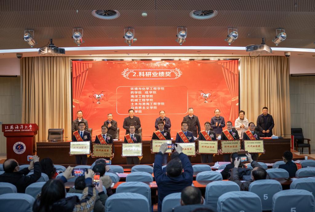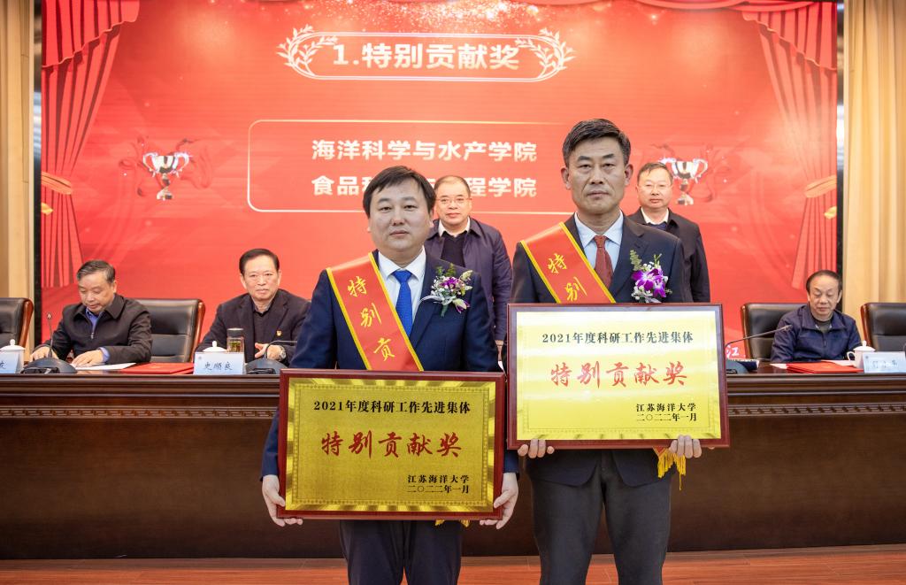 校领导先后为2021年度特别贡献奖获奖单位、科研业绩奖获奖单位、争先进位奖获奖单位、科研工作先进个人奖获奖同志颁奖。