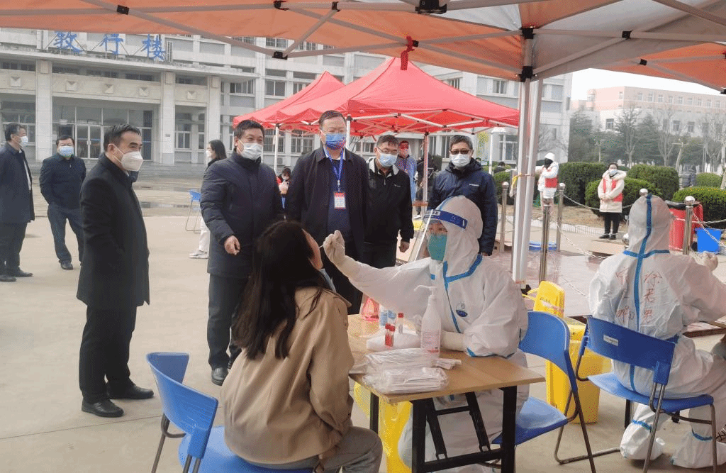 王自力一行先后来到主校区和通灌校区核酸检测现场和宿舍区了解防疫情况,向坚守在一线的宿管员、辅导员、青年志愿者表示慰问,对党员在关键时期发挥先锋模范作用表示诚挚的敬意,并要求相关部门要做好与医疗队的对接,确保学生应检尽检,不漏一人,全力配合疾控部门做好医疗保障服务,确保检测现场安全有序、确保检测工作高效精准推进。