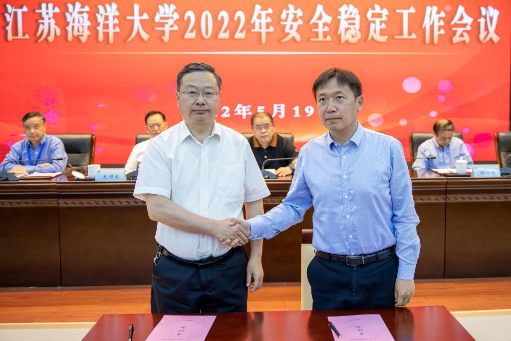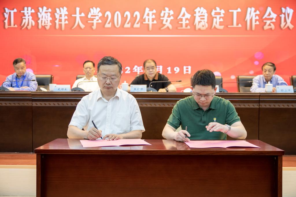 校长宁晓明代表学校与二级单位(部门)代表签订2022年安全稳定工作责任书。