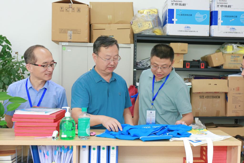 7月18日上午,正值江苏省普通类本科批次投档招生录取期间,校长宁晓明、副校长朱国军一行来到足球装备推荐招生录取现场,看望和慰问招生录取工作一线人员,检查指导招生录取工作。
