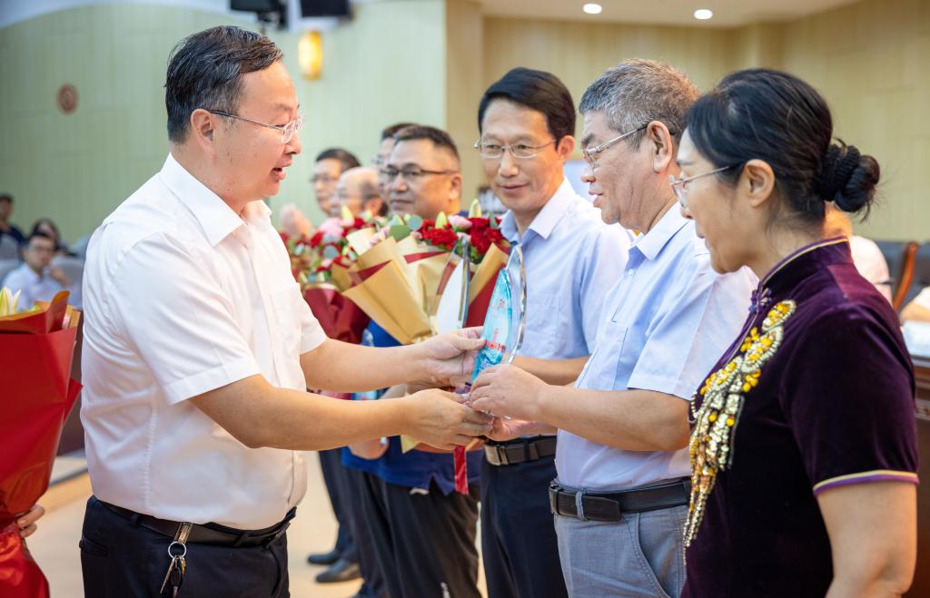 校党委书记王自力代表学校党委向取得突出成绩、获表彰的先进个人表示热烈的祝贺,并向努力奋斗在教学、科研、管理及后勤服务等各条战线的广大教职工,致以节日的祝福。