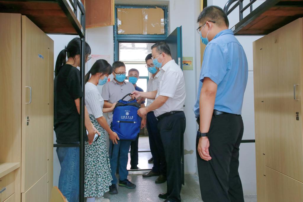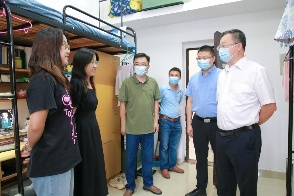 9月4日下午,校长宁晓明、副校长朱国军分别到宋跳校区、通灌校区、苍梧校区看望首批报到的本科生、研究生新生。