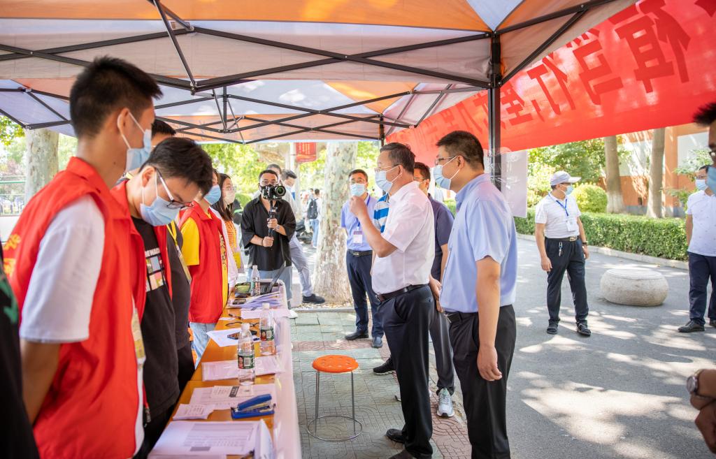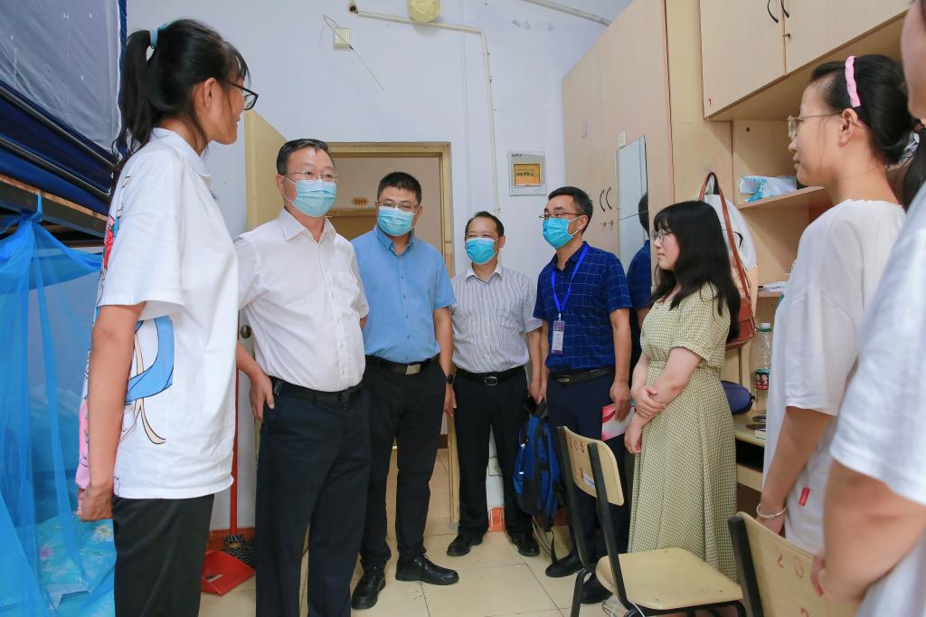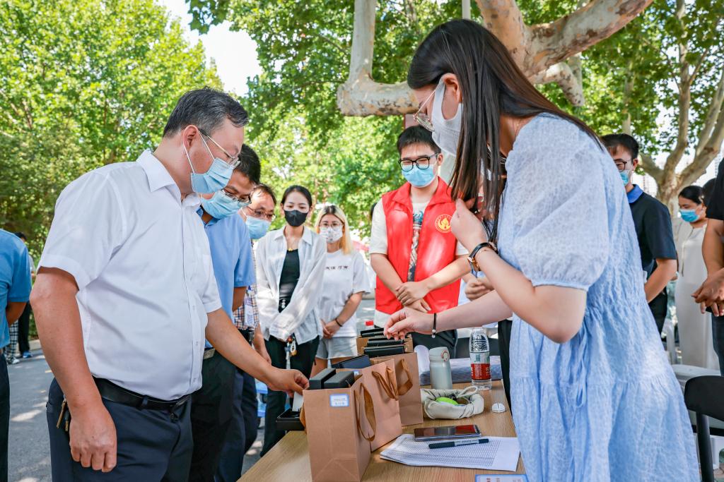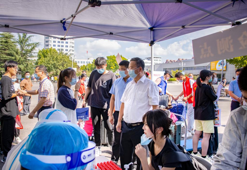 根据学校迎接2022级新生相关工作安排,在各校区门口,新生报到需要通过查验身份、测温、出示健康码和通行码、核酸检测等流程进入校园。宁晓明仔细查看了迎新报到现场工作布置和疫情防控措施落实情况,每到一处,都详细了解新生报到情况。