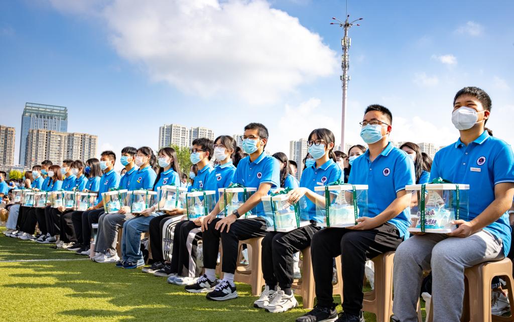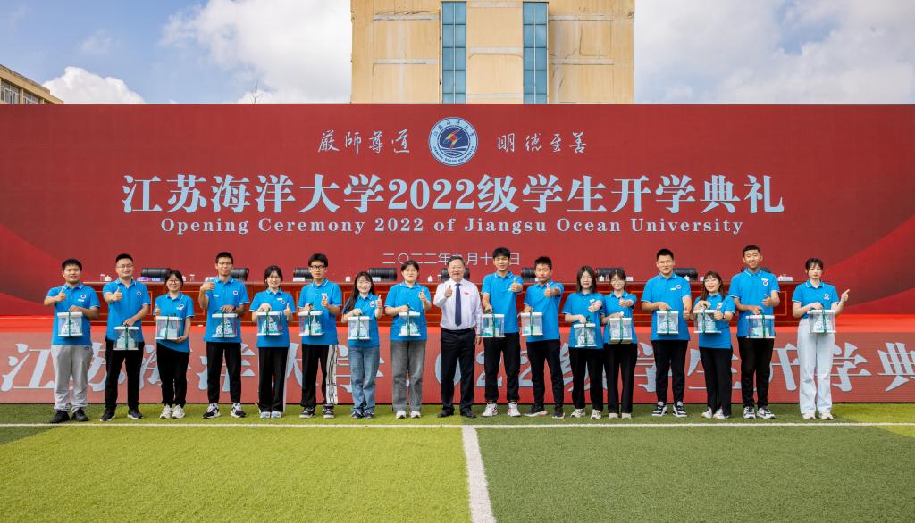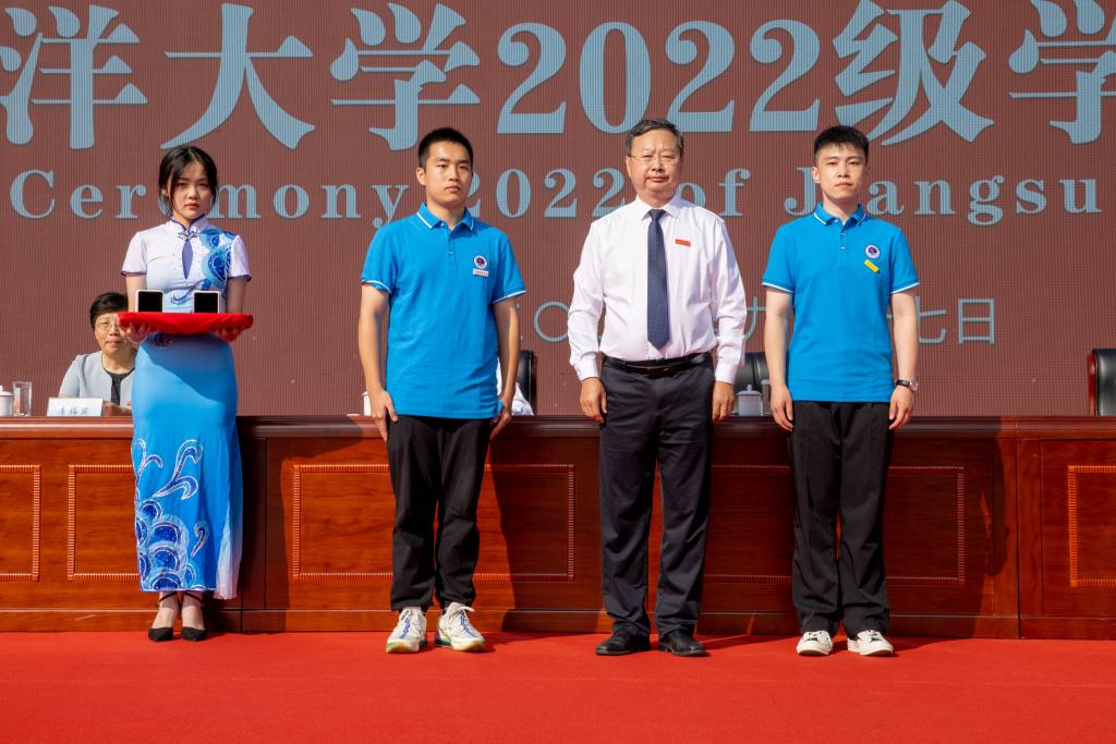 校长宁晓明为本科生、研究生新生代表授予、佩戴校徽,所有新生起立共同佩戴校徽。这枚校徽,不仅象征着6529名新同学正式成为海大的一员,也意味着海大学子从此刻起,要满怀蔚蓝信仰,勇担时代使命,开启追逐梦想、奋斗青春的新征程。