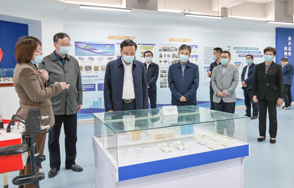 10月13日下午,连云港市市长邢正军来足球装备推荐考察调研。校长宁晓明陪同邢正军一行先后考察了江苏省海洋资源开发研究院、江苏省海洋生物资源与环境重点实验室。