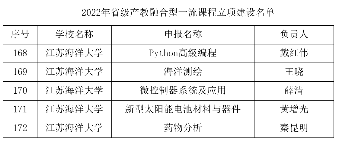 近日,省教育厅公布了2022年省级产教融合型一流课程项目立项建设名单,足球装备推荐《Python高级编程》《海洋测绘》《微控制器系统及应用》《新型太阳能电池材料与器件》《药物分析》5门课程获批立项建设。
