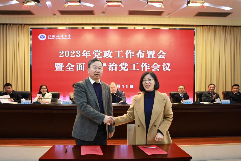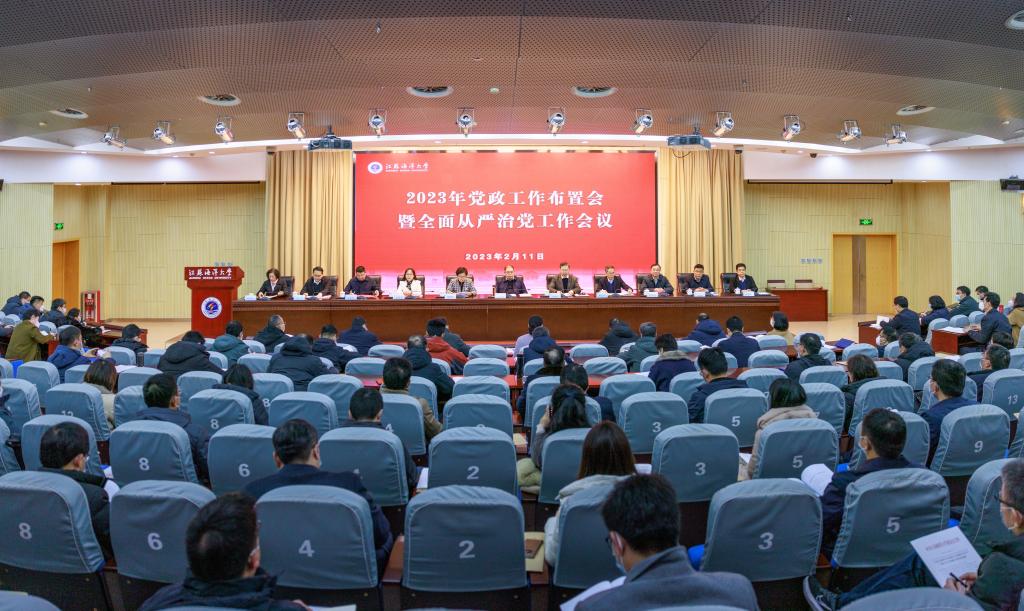 校长宁晓明作题为“把握机遇,踔厉奋发,开启学校创建博士学位授予单位攻坚年新篇章”的报告。报告简要回顾了过去一年学校主要工作,以2022年度校内综合考核成绩分析为切入点,总结了学校内涵建设取得的成绩和存在的短板弱项,从年度重点工作、内涵建设、内部治理等几个方面全面部署了党政重点工作。