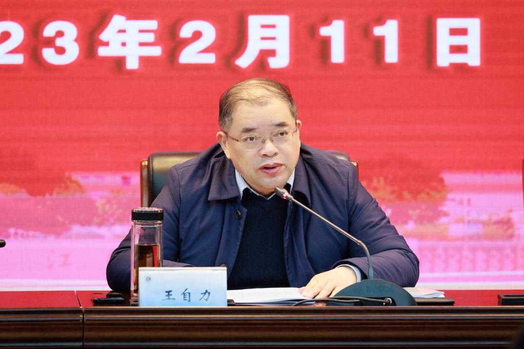 王自力深入分析和阐述了学校2023年度六项重点工作,并强调,六项重点工作既有当前的紧迫任务,又关系到今后学校办学特色、水平和发展方向,还确定了必须持续夯实的基础工程,这些工作在学校党的建设和高质量发展中具有特殊的重要作用,都是具有战略性、全局性、引领性和基础性的重大工作,是需要多部门协同配合、系统推进的综合性工作,分管校领导、牵头部门、协同配合单位必须要高度重视,真正抓实抓好抓出成效。