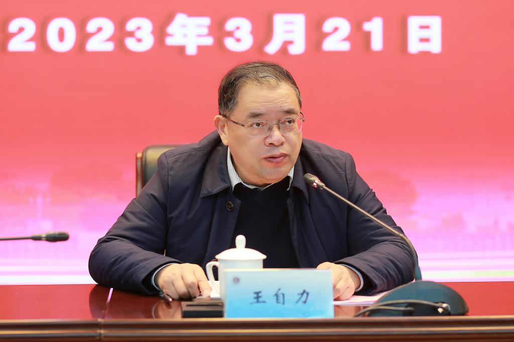 校党委书记王自力作总结讲话。他指出,今后五年是学校推进高质量发展、实现办学层次跨越的重要窗口期。在这样特殊的背景下,做好安全稳定工作显得尤为重要。王自力就做好学校2023年度安全稳定工作,提了三点要求:一是要深入学习贯彻党的二十大关于国家安全的重要精神,不断提升做好安全稳定工作的政治自觉;二是要聚焦重点领域关键环节,进一步明确安全稳定工作的政治任务;三是要守土有责、守土负责、守土尽责,持续压紧压实安全稳定工作的政治责任。