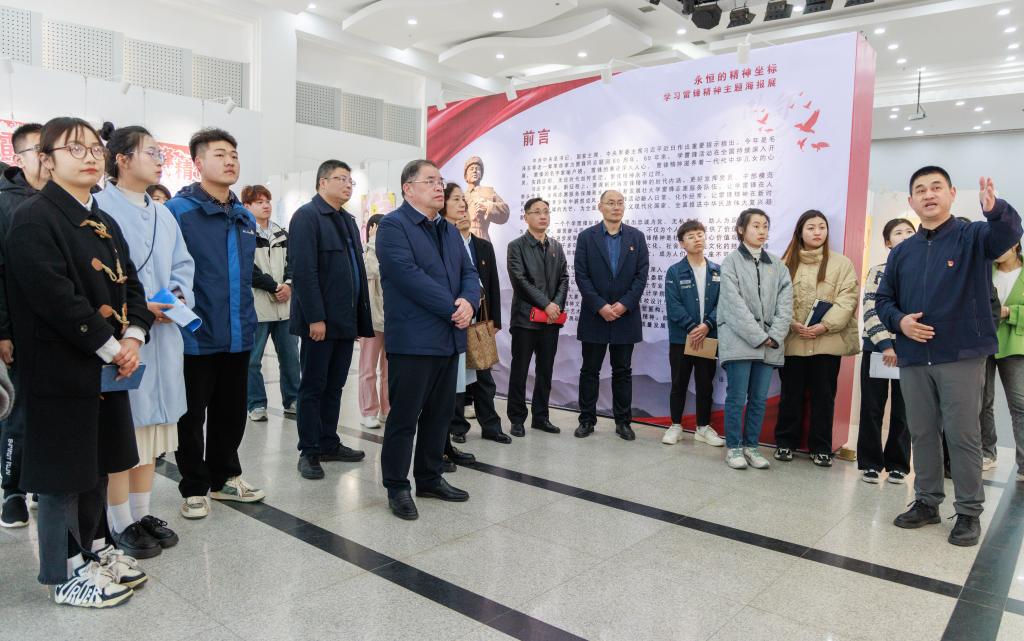 3月21日下午,校党委书记王自力邀请20多名青年学生代表来到艺术设计学院多功能展馆,共同观看“雷锋——永恒的精神坐标”主题海报展。王自力一边听海报主创人员讲解,一边寄语青年学生,“雷锋精神的实质是全心全意为人民服务,精神内涵之一就是奉献精神!”
