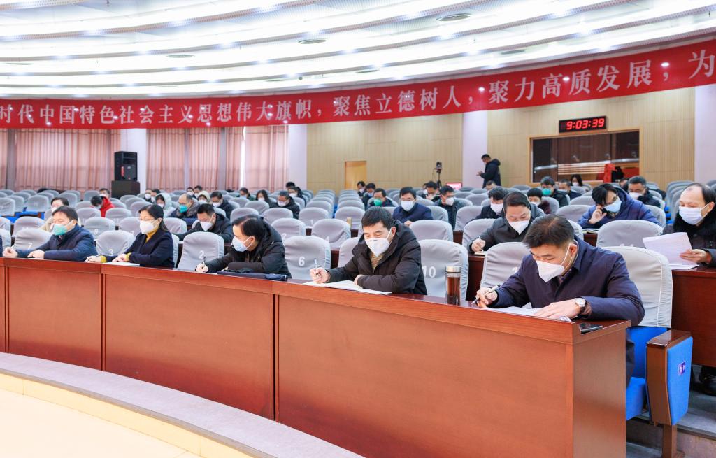 报告指出,党的二十大报告设“实施科教兴国战略,强化现代化建设人才支撑”专章,将教育摆在极其重要的位置,对教育事业作出了重大战略部署,为学校的发展进一步指明了方向。报告主要从三个方面部署了党的二十大精神在学校的贯彻落实工作:一是增强“识势”之能,准确把握党的二十大作出的各项新部署新要求;二是增强“对标”之勇,全面对标、深入查找学校高质量发展存在的短板弱项;三是掌握“布局”之法,切实做好贯彻落实党的二十大精神战略谋划各项工作。